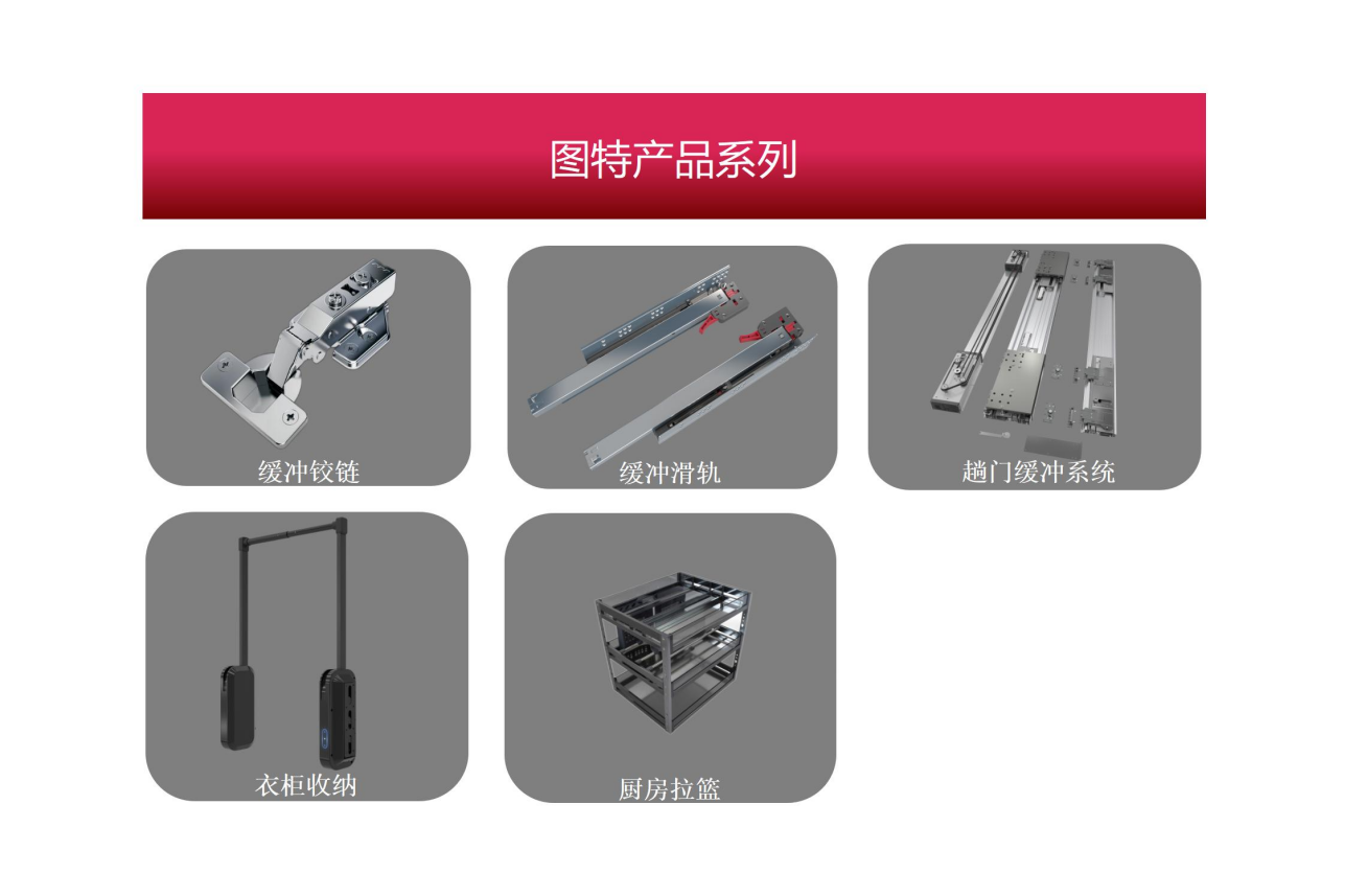 廣東圖特家居科技股份有限公司(以下簡(jiǎn)稱:圖特)始建于2006年,坐落于家居五金之都的廣東順德勒流,是一家集研發(fā)、生產(chǎn)、營(yíng)銷及售后服務(wù)為一體的大型專業(yè)家居五金系統(tǒng)服務(wù)商?,F(xiàn)已發(fā)展成為國(guó) 家級(jí)高新技術(shù)企業(yè)、廣東省專精特新中小企業(yè)、廣東省創(chuàng)新型中小企業(yè)、細(xì)分行業(yè)龍頭企業(yè)、順德制造100強(qiáng)企業(yè)。公司專注生產(chǎn)緩沖鉸鏈、移門緩沖系統(tǒng)、衣柜收納系統(tǒng)、櫥柜拉籃系列等家居五金配件,為家居行業(yè)提供五金整體解決方案。