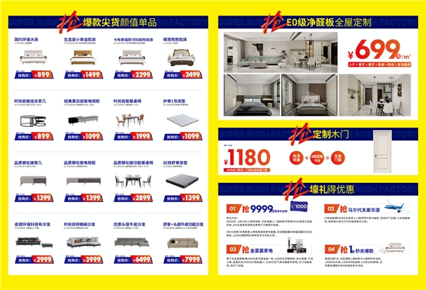 掌上明珠家居超級搶工廠,整家設(shè)計(jì)拎包入住,十二大主題風(fēng)格樣板間,一站式購齊,更多活動詳情,請到附近專賣店咨詢。