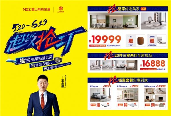 5月20日至6月19日掌上明珠家居超級搶工廠,搶工廠直供,享底價(jià)狂歡。全國2000余家專賣店,上萬件家具產(chǎn)品,件件都是工廠底價(jià)。 整家設(shè)計(jì)拎包入住,19999元搶20件成品家具加10平米定制, 699元每平米搶全屋定制。三十四年國貨大牌,50萬平家居制造夢工廠,掌上明珠家居為您的新家保價(jià)護(hù)房!搶超多豪禮優(yōu)惠:搶1元秒殺,拍視頻搶華為手機(jī),搶9999張超級搶工廠補(bǔ)貼券,搶馬爾代夫豪華游!搶直播間超級福袋:5月25日,6月8日看直播搶福袋抽華為手機(jī)大獎(jiǎng)!