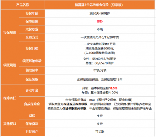 最近有關(guān)注市場行情的朋友,應(yīng)該都知道,一些市場表現(xiàn)還不錯(cuò)的增養(yǎng)老年金險(xiǎn)、增額終身壽馬上就要下架了,其中包括高領(lǐng)取、高現(xiàn)價(jià)的福滿滿3號養(yǎng)老年金尊享版,也將于2024年2月29日23點(diǎn)59分停止錄入。目前的產(chǎn)品行情多變,咱們普通人還能買得到的好產(chǎn)品,一只手就能數(shù)得過來,真的就是停一款,少一款了。如果是有準(zhǔn)備存錢、想做養(yǎng)老規(guī)劃、為孩子做教育規(guī)劃等需求的,遇上優(yōu)秀的產(chǎn)品抓緊買準(zhǔn)沒錯(cuò),如果你在尋找好增額壽做投資、規(guī)劃財(cái)富傳承,不妨考慮下這款下架在即的福滿滿3號養(yǎng)老年金。
