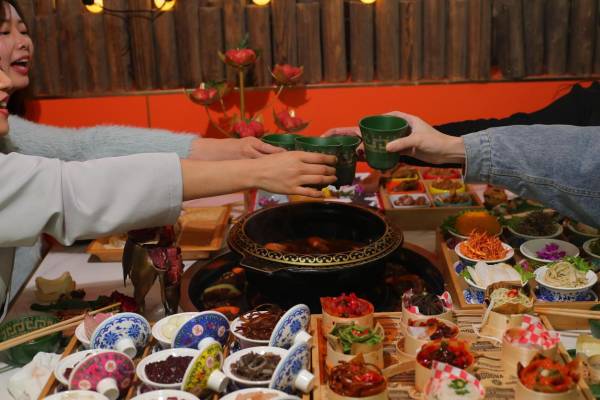 在蜀令營(yíng),涮鍋和烤肉不必二選一,魚(yú)和熊掌可以兼得。因?yàn)槠放铺匾鈱?duì)鍋具進(jìn)行了創(chuàng)新——特殊的九孔噴泉火鍋器皿,中間涮肉,外圍烤肉,當(dāng)鍋內(nèi)底湯被加熱到合適溫度時(shí),九孔鍋還會(huì)涌現(xiàn)出柱狀噴霧,絕美壯觀,好吃又好看;AI智能溫控系統(tǒng)還可以根據(jù)不同的食材和湯底調(diào)整適宜溫度,能最 大程度保留原生營(yíng)養(yǎng)成分,使涮肉久煮不老、烤肉久烤不干。