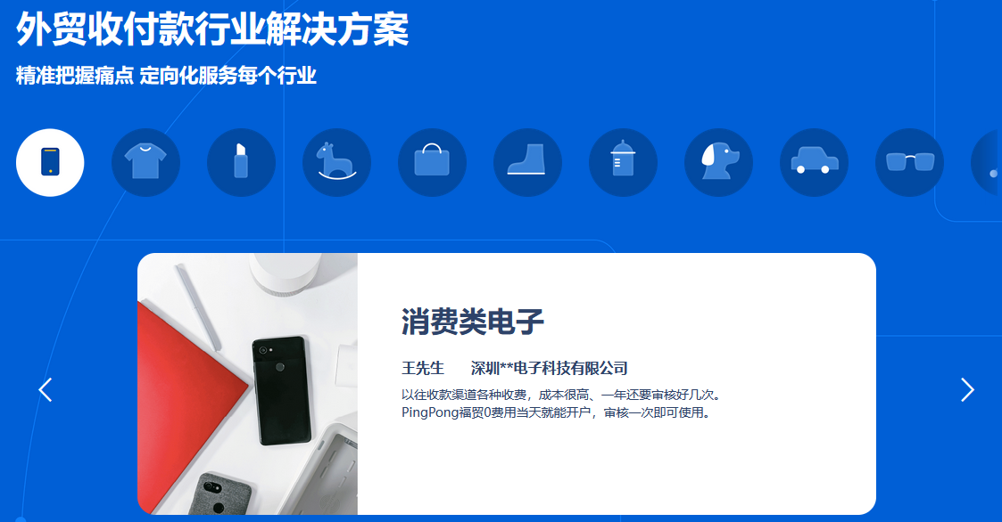 不僅在全球收付的服務(wù)提供之上,以數(shù)字技術(shù)擴(kuò)展細(xì)化服務(wù)滿足企業(yè)外貿(mào)收付全鏈路上的多場(chǎng)景需求,PingPong福貿(mào)還通過(guò)不斷加強(qiáng)數(shù)字技術(shù)在產(chǎn)業(yè)服務(wù)和服務(wù)貿(mào)易方面的融合,積極拓寬業(yè)務(wù)邊界,實(shí)現(xiàn)多領(lǐng)域的業(yè)務(wù)覆蓋。目前,PingPong福貿(mào)的一站式數(shù)字化外貿(mào)收付款解決方案已實(shí)現(xiàn)對(duì)鋼鐵、服裝、眼鏡、3C、汽配、寵物用品等多個(gè)產(chǎn)業(yè)帶的業(yè)務(wù)滲透,針對(duì)不同產(chǎn)業(yè)量體裁衣,為各類型的數(shù)萬(wàn)出口企業(yè)帶來(lái)了個(gè)性化外貿(mào)收付服務(wù)。而為繼續(xù)深入服務(wù)類業(yè)務(wù)的外貿(mào)收付款需求場(chǎng)景,PingPong福貿(mào)還提供“服務(wù)貿(mào)易”功能,從物流服務(wù)、廣告服務(wù)、軟件服務(wù)三大場(chǎng)景出發(fā),為該類型外貿(mào)企業(yè)提供9大本地賬戶極速收款、7*24h中行實(shí)時(shí)匯率結(jié)匯、預(yù)約換匯等多應(yīng)用場(chǎng)景功能,并以數(shù)十張境內(nèi)外雙邊支付牌照的合規(guī)化,以及智能風(fēng)控系統(tǒng)實(shí)時(shí)檢測(cè)交易風(fēng)險(xiǎn)下的安全化,全力為外貿(mào)企業(yè)的跨境資金流通保駕護(hù)航。