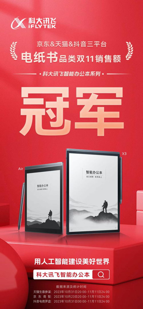 說到辦公神器,不得不提到訊飛智能辦公本系列。從2019年開始,科大訊飛踏入智能辦公本的研發(fā)行列,發(fā)布了旗下第 一款智能辦公本產(chǎn)品——訊飛智能辦公本X1,開啟了全新的智能辦公時代。隨后,科大訊飛又在2021發(fā)布了辦公本X2,進一步提升日常辦公效率。今年8月9日,科大訊飛再次發(fā)力,推出訊飛智能辦公本X3,將訊飛星火認知大模型融入其中,打造出最智能的辦公本。同時,這臺訊飛智能辦公本X3在剛結(jié)束的雙11狂歡節(jié)上,獲得天貓、京東、抖音三平臺的電紙書品類銷售額冠軍,連續(xù)3年全周期銷售額冠軍,可見它的硬核實力深受用戶的認可。