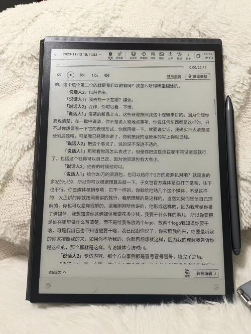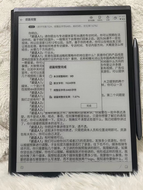 重要的是,在訊飛智能辦公本X3錄音轉(zhuǎn)寫能力基礎(chǔ)之上,憑借著訊飛星火大模型V3,0加持,實現(xiàn)了【會議紀要】和【語篇規(guī)整】功能?!緯h紀要】就是把錄音轉(zhuǎn)文字的會議文本內(nèi)容和手寫重點,提取重要信息,自動生成可讀性更高的正式版會議紀要,并且會議內(nèi)容與關(guān)鍵信息都不會遺漏。在AI算法的加持下,幫助我們實現(xiàn)2小時會議,5分鐘快速掌握,從此以后,做會議紀要再也不是什么難事了!