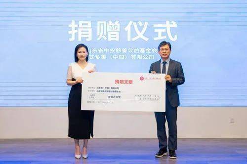 捐贈儀式上,山東省中投慈善公益基金會向艾多美回贈榮譽證書。雙方共同表示,未來將在更多領域建立長期緊密的公益合作,幫助到更多需要幫助的人。