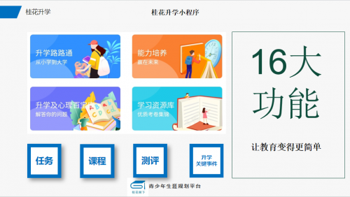 值得一提的是,桂花樹下自主開發(fā)的國內(nèi)首家大數(shù)據(jù)升學(xué)平臺——桂花升學(xué)小程序,貫通K12階段到高考升學(xué)的一站式生涯規(guī)劃,涵蓋升學(xué)大數(shù)據(jù)管理、家庭教育及升學(xué)規(guī)劃專業(yè)知識普及、共性問題解決、個性化問題咨詢、家校社協(xié)同育人五個關(guān)鍵維度,滿足教育行政主管部門、學(xué)校、企事業(yè)單位、社會組織、家長在家庭教育及生涯規(guī)劃領(lǐng)域的多樣化需求。