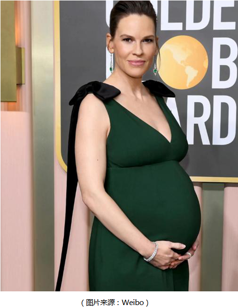 準(zhǔn)媽媽希拉里·斯萬克身穿綠色無袖長裙,耳畔鉑金鑲嵌祖母綠寶石及鉆石的夸張耳環(huán)來自蒂芙尼(Tiffany & Co.)古董珍藏庫,和禮服顏色相呼應(yīng),盡顯溫柔端莊。