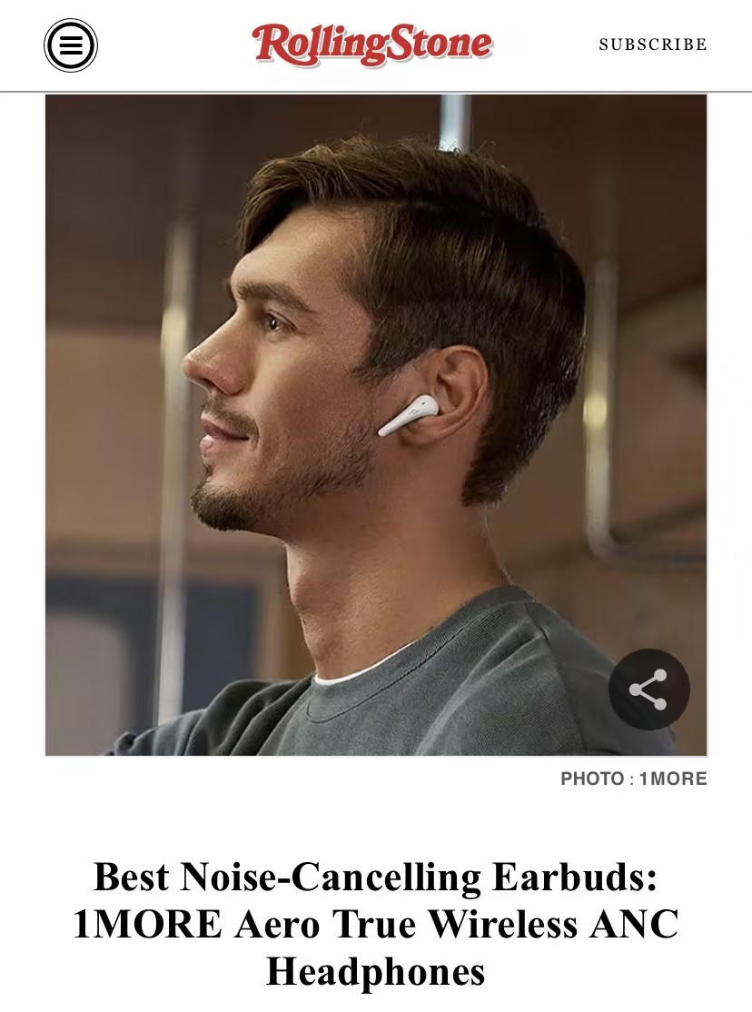 1MORE Aero優(yōu)秀的性能表現(xiàn)不僅獲得了《RollingStone》(滾石)的高評價,其他權(quán) 威媒體也對其青睞有加。知名測評網(wǎng)站Popular Mechanics將1MORE Aero列入 “最適合聽音樂和播客的無線藍(lán)牙耳機”清單,稱其為最劃算的降噪耳機。消費者媒體《Expert Reviews》在近期測評中評價1MORE Aero:“除了空間音頻功能,還有良好的音頻性能、穩(wěn)定的降噪和輕巧舒適的佩戴,功能齊全,電池續(xù)航和觸控也都被顧及到?!辈⒔o予4/5星評價,授予推薦獎。雅虎新聞則在《最 佳AirPods Pro平替推薦》中收錄了1MORE Aero,并稱之為:“本組中能與令人艷羨的AirPods Pro相匹敵的耳機。”