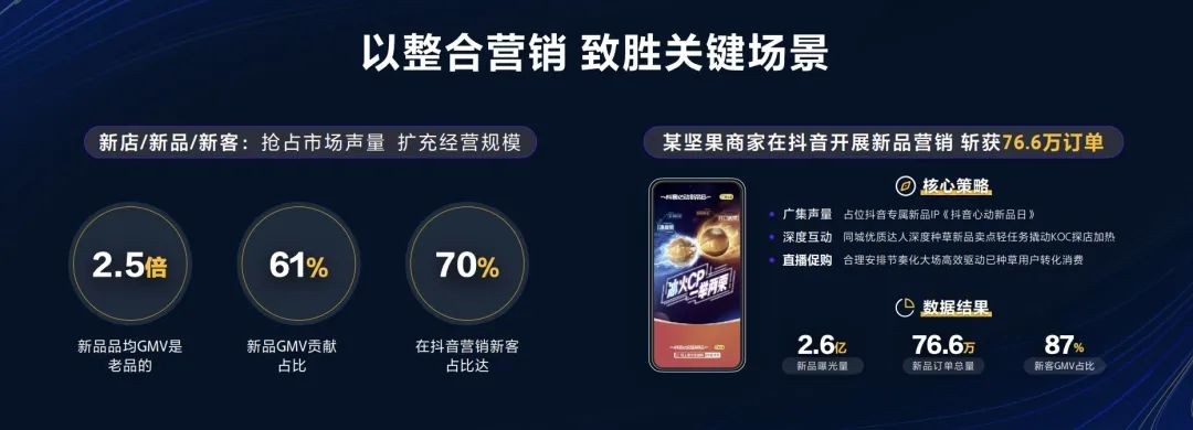 在抖音生活服務(wù),新品的GMV貢獻(xiàn)占比達(dá)到61%,新客占比達(dá)到70%。抖音營(yíng)銷已成為許多商家推新品、拉新客的優(yōu)選。