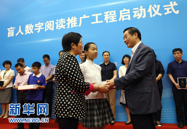 9月13日,由中宣部、財政部、文化部、國家新聞出版廣電總局、中國殘聯(lián)組織實(shí)施的“盲人數(shù)字閱讀推廣工程”在北京國家圖書館啟動。新華社記者 劉衛(wèi)兵 攝