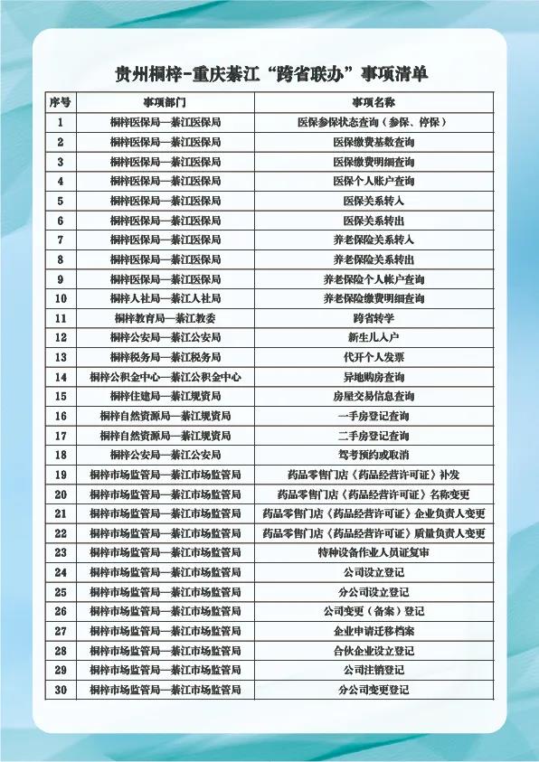 第一批“跨省聯(lián)辦”事項(xiàng)如下: