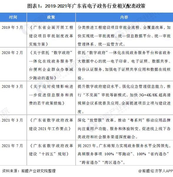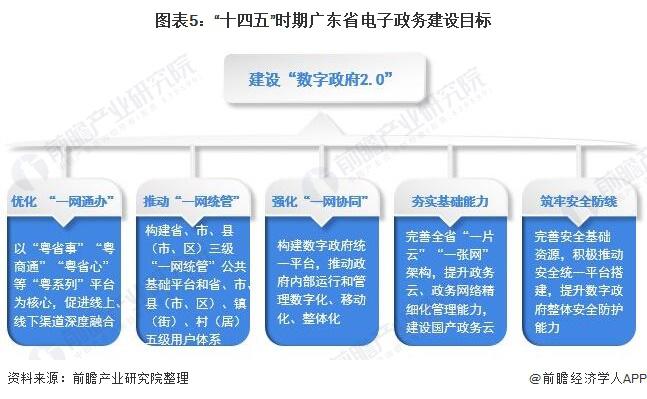 廣東省持續(xù)出臺(tái)政策推動(dòng)電子政務(wù)的發(fā)展。《關(guān)于依托 " 數(shù)字政府 " 一體化在線政務(wù)服務(wù)平臺(tái)便利企業(yè)群眾辦事減少跑動(dòng)的通知》中提到要依托 " 數(shù)字政府 " 一體化在線政務(wù)服務(wù)平臺(tái)和省政務(wù)大數(shù)據(jù)中心的統(tǒng)一電子印章、電子證照、數(shù)據(jù)共享、身份認(rèn)證服務(wù),加強(qiáng)電子證照共享應(yīng)用和數(shù)據(jù)在線核驗(yàn)?!稄V東省數(shù)字政府改革建設(shè) " 十四五 " 規(guī)劃》中提到到 2025 年,廣東將實(shí)現(xiàn)政務(wù)服務(wù)水平全國領(lǐng)先,高頻服務(wù)事項(xiàng) 100%" 零跑動(dòng) "、100%" 省內(nèi)通辦 "" 跨省通辦 "" 灣區(qū)通辦 "。