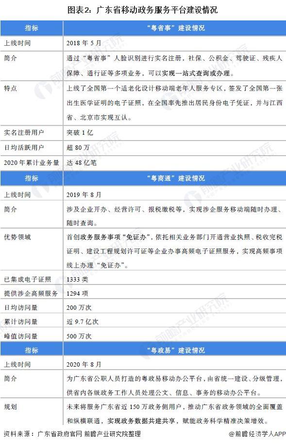 廣東省深入推進(jìn) " 數(shù)字政府 " 建設(shè),推進(jìn)政務(wù)服務(wù)事項(xiàng)標(biāo)準(zhǔn)化,優(yōu)化再造業(yè)務(wù)流程。陸續(xù)推出 " 粵省事 "" 粵商通 "" 粵政易 " 系列品牌,高頻服務(wù)事項(xiàng)基本實(shí)現(xiàn) " 指尖辦理 "。" 粵省事 " 于 2018 年 5 月上線,可以實(shí)現(xiàn)一站式查詢或辦理。" 粵商通 " 于 2019 年 8 月上線,由廣東省政數(shù)局統(tǒng)籌建設(shè),各主管部門和地市全面參與,廣東省數(shù)字政府建設(shè)運(yùn)營中心提供技術(shù)支撐和運(yùn)營服務(wù),進(jìn)一步推動(dòng)了數(shù)字政府的建設(shè)。