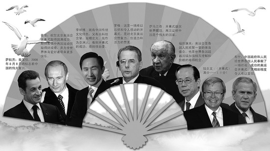 “開幕式精彩紛呈,令世界難忘。我感受到中國人民的激情,也看到了中國在舉辦奧運(yùn)會(huì)過程中所做的大量卓有成效的工作。”菲律賓總統(tǒng)阿羅約說。