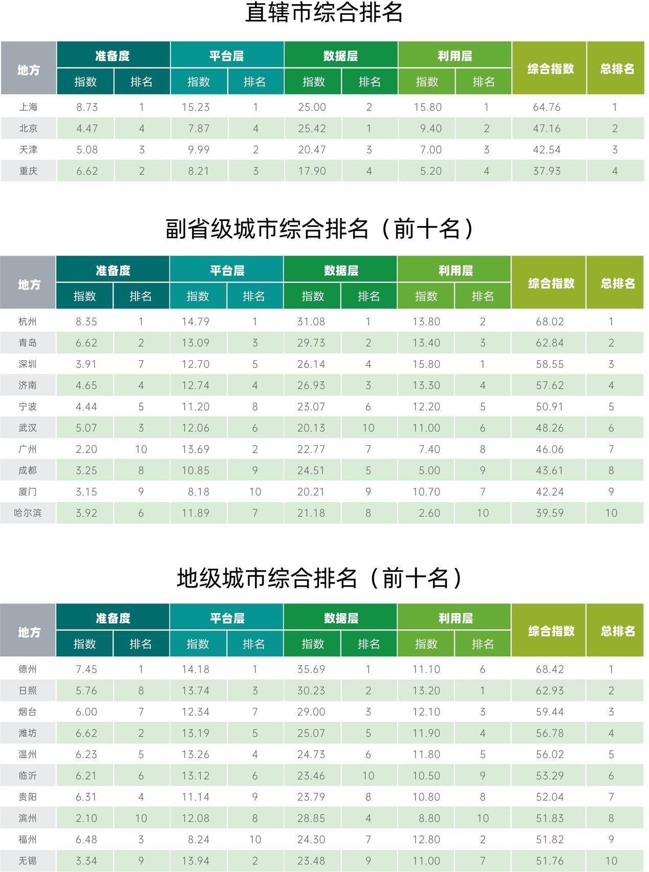 整體上,在省域中,山東省與浙江省持續(xù)保持在“第一數(shù)級”的領(lǐng)先地位,山東省的省本級和下屬地市近年來齊心協(xié)力持續(xù)進步,今年首次名列全國第一;在城市中,部分中小城市異軍突起,實現(xiàn)了超越,如德州市與日照市進入了前五。與此相對應的是部分傳統(tǒng)強市出現(xiàn)了上升瓶頸,進步較小甚至有些許退步。