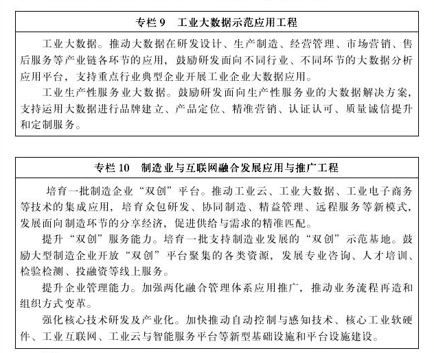 目標(biāo):到2020年,互聯(lián)網(wǎng)協(xié)議第6版(IPv6)大規(guī)模部署和商用,5G開始商用部署;“互聯(lián)網(wǎng)+工業(yè)”發(fā)展取得明顯成效,培育1個(gè)國(guó)家級(jí)制造業(yè)創(chuàng)新中心(工業(yè)技術(shù)研究基地),建設(shè)“工業(yè)云”大數(shù)據(jù)中心;實(shí)施100個(gè)數(shù)字化車間、1000條自動(dòng)化生產(chǎn)線的智能制造試點(diǎn)示范工程,規(guī)模以上工業(yè)企業(yè)互聯(lián)網(wǎng)應(yīng)用普及率達(dá)到90%以上;構(gòu)建適應(yīng)信息時(shí)代跨界創(chuàng)新、融合創(chuàng)新和迭代創(chuàng)新的體制機(jī)制;創(chuàng)新民生服務(wù)供給模式,創(chuàng)新社會(huì)治理方式,基本形成創(chuàng)新的發(fā)展環(huán)境。