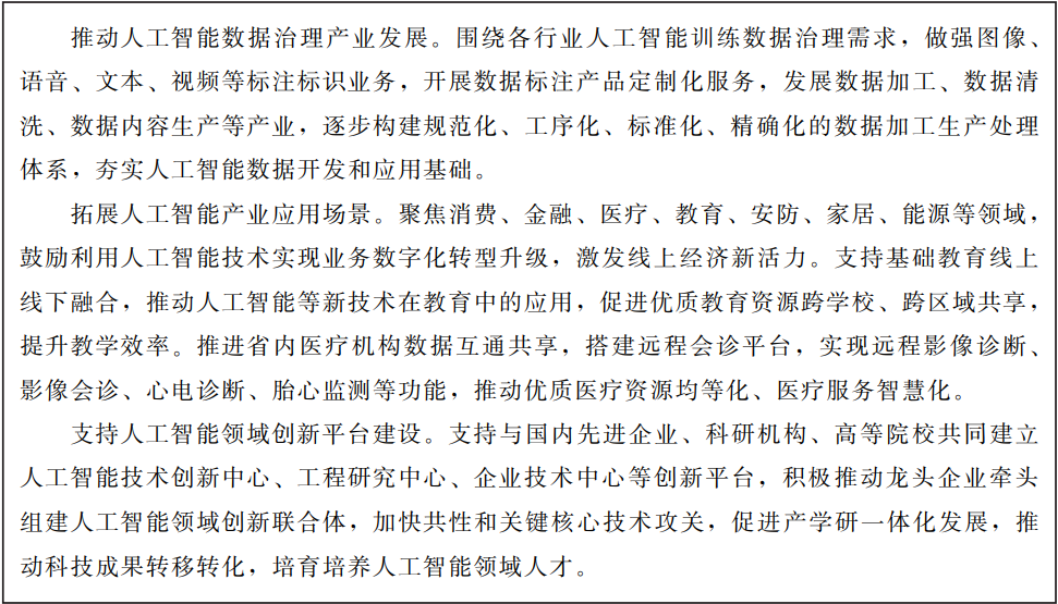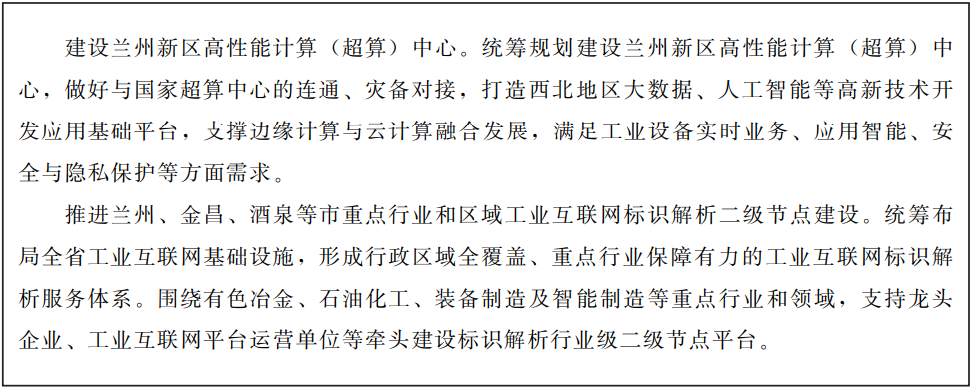 推動(dòng)國家新一代人工智能創(chuàng)新發(fā)展試驗(yàn)區(qū)落地甘肅,規(guī)劃建設(shè)一批人工智能超算中心,打造人工智能數(shù)據(jù)資源、計(jì)算能力、標(biāo)準(zhǔn)體系、測試評估等服務(wù)平臺。依托大數(shù)據(jù)中心集群,打造數(shù)字智能產(chǎn)業(yè)鏈。加快引進(jìn)國內(nèi)外人工智能領(lǐng)軍企業(yè),推進(jìn)人工智能在民生領(lǐng)域的融合應(yīng)用,促進(jìn)技術(shù)集成和商業(yè)模式創(chuàng)新。整合省內(nèi)高校人才資源,聯(lián)合國內(nèi)外頂級人工智能機(jī)構(gòu),打造一流的人工智能超算產(chǎn)業(yè)基地。