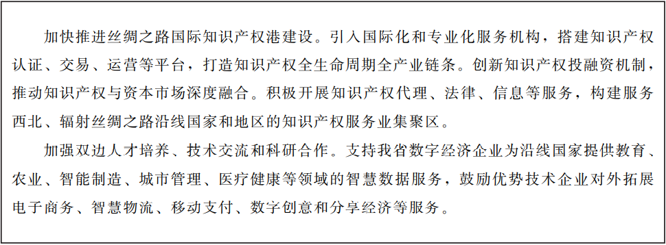 ——開放合作。立足“一帶一路”建設(shè)區(qū)位優(yōu)勢,強(qiáng)化與沿線國家的開放合作,加快“數(shù)字絲綢之路”建設(shè),提高我省數(shù)字經(jīng)濟(jì)創(chuàng)新力、引領(lǐng)力和輻射力。