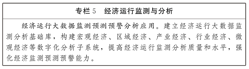 加快政府經(jīng)濟(jì)運(yùn)行調(diào)節(jié)體系建設(shè)。圍繞生產(chǎn)、消費(fèi)、投資、就業(yè)、財(cái)政、金融、物流、能源等經(jīng)濟(jì)運(yùn)行重點(diǎn)領(lǐng)域,推進(jìn)經(jīng)濟(jì)運(yùn)行數(shù)據(jù)采集、治理標(biāo)準(zhǔn)化建設(shè),加快市場主體、生產(chǎn)要素、宏觀政策、市場競爭、資源環(huán)境等基礎(chǔ)數(shù)據(jù)匯聚,建立經(jīng)濟(jì)運(yùn)行大數(shù)據(jù)分析計(jì)算模擬等模型,開展經(jīng)濟(jì)運(yùn)行分析和預(yù)判,分級構(gòu)建決策指揮系統(tǒng),為宏觀調(diào)控、產(chǎn)業(yè)政策、風(fēng)險(xiǎn)處置等提供決策支撐。