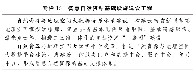 推動(dòng)自然資源數(shù)字化管理。結(jié)合“多規(guī)合一”成果,建設(shè)全省統(tǒng)一的自然資源與地理空間大數(shù)據(jù)平臺,提供時(shí)空基準(zhǔn)和“一張圖”服務(wù)。完善現(xiàn)有時(shí)空數(shù)據(jù)資源,規(guī)范云南省時(shí)空數(shù)據(jù)基準(zhǔn),建立時(shí)空數(shù)據(jù)管理和更新維護(hù)體系。建設(shè)自然資源全生命周期智慧管控體系,發(fā)展自然資源調(diào)查監(jiān)測評價(jià)、自然資源資產(chǎn)管理、國土空間規(guī)劃與用途管制等自然資源管理服務(wù)應(yīng)用。