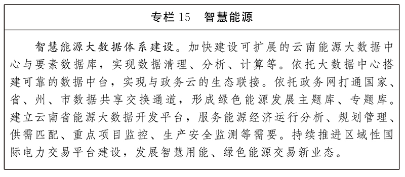 推動(dòng)智慧能源大數(shù)據(jù)采集開發(fā)利用。建設(shè)聯(lián)通國家、省、州、市有關(guān)部門以及電、煤、油、氣等有關(guān)企業(yè)的能源數(shù)據(jù)傳輸網(wǎng)絡(luò),建設(shè)可擴(kuò)展的云南綠色能源大數(shù)據(jù)中心,支撐能源數(shù)據(jù)應(yīng)用建設(shè)。打造“互聯(lián)網(wǎng)+能源”公共服務(wù),提升智慧用能等一站式服務(wù)水平。建立覆蓋能源生產(chǎn)、流通、消費(fèi)全鏈條的能源監(jiān)督管理網(wǎng)絡(luò)體系,支撐政府開展能源規(guī)劃決策、能源宏觀調(diào)度、能源安全保障、能源產(chǎn)業(yè)結(jié)構(gòu)調(diào)整等。