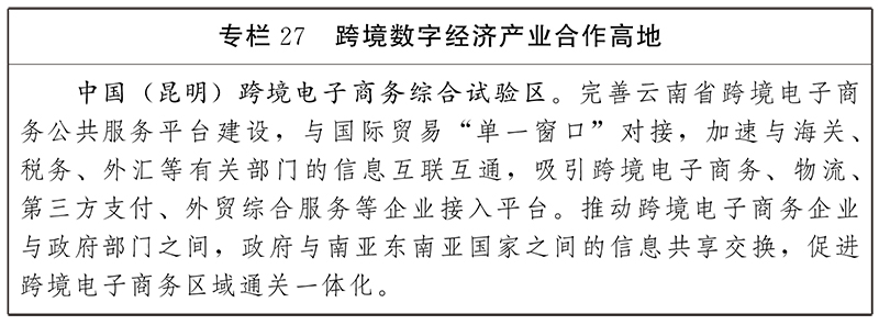圍繞面向南亞東南亞輻射中心數(shù)字樞紐,建設(shè)跨境數(shù)字基礎(chǔ)設(shè)施,打造國際通信樞紐和產(chǎn)業(yè)合作平臺,推進(jìn)跨境貿(mào)易、跨境物流、跨境金融數(shù)字化發(fā)展,大力發(fā)展跨境電子商務(wù),推進(jìn)跨境數(shù)字經(jīng)濟(jì)國際合作,構(gòu)建數(shù)字絲路的戰(zhàn)略核心樞紐。