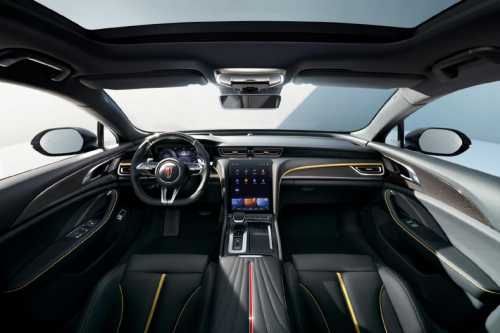 外觀驚艷,內(nèi)飾也相得益彰。紅旗H6內(nèi)飾采用以駕駛者為中心的紅旗經(jīng)典環(huán)抱式架構(gòu),融入優(yōu)雅、科技、運動三元素。金盞黃加黑色配色內(nèi)飾、激進運動的桶式座椅,質(zhì)感豐富、細膩精湛,兼具高顏值和舒適感。