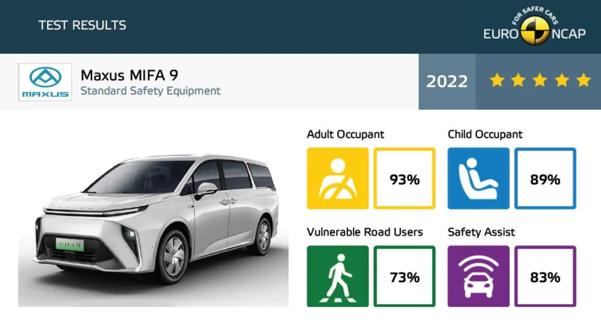 (上汽大通MAXUS MIFA 9斬獲Euro NCAP五星安全認證)