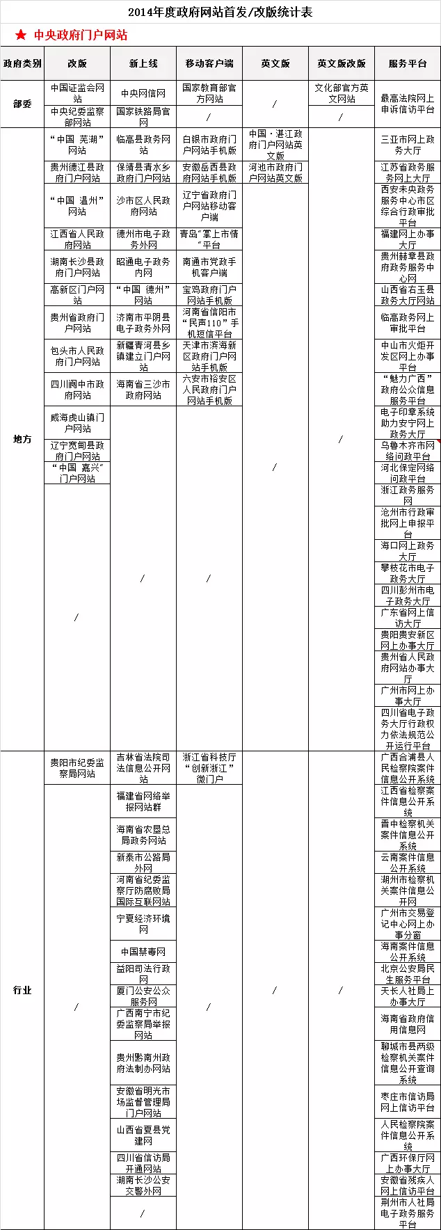 附:2014年度政府網(wǎng)站首發(fā)/改版統(tǒng)計表