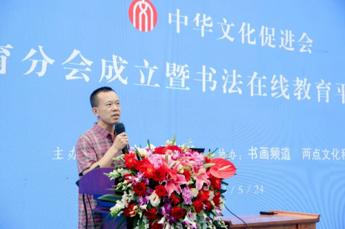 書(shū)法教育分會(huì)副會(huì)長(zhǎng)兼秘書(shū)長(zhǎng)蔡永清先生發(fā)言并介紹了分會(huì)推出的首個(gè)在線教育平臺(tái),該平臺(tái)是文促會(huì)整合包括墨貢科技和兩點(diǎn)文化在內(nèi)的社會(huì)資本和優(yōu)質(zhì)書(shū)法教育資源,利用互聯(lián)網(wǎng)優(yōu)勢(shì)夯實(shí)基礎(chǔ),傳承經(jīng)典,以老帶新、以專育新、開(kāi)拓創(chuàng)新的思路去實(shí)現(xiàn)書(shū)法實(shí)踐和書(shū)法藝術(shù)雙重成效,培養(yǎng)我們的下一代想寫字、能寫字、寫好字的習(xí)慣。該平臺(tái)也將會(huì)充分利用科技手段,以教、學(xué)、練、考、評(píng)、展為書(shū)法教育標(biāo)準(zhǔn),讓書(shū)法藝術(shù)之花在全國(guó)遍地開(kāi)花,讓傳統(tǒng)文化促進(jìn)國(guó)際交流。