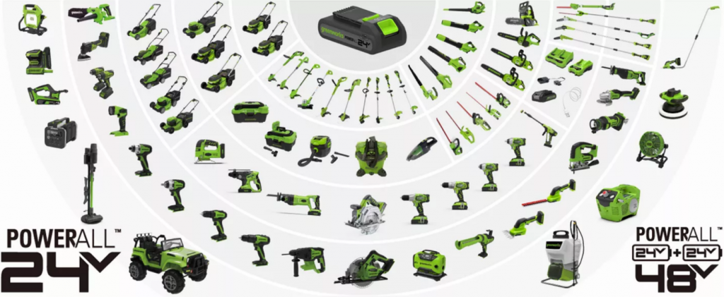 其中,24V電池包適用于所有g(shù)reenworks 24V系列工具,可以在不同工具之間無縫切換,享受自由靈活的無繩操作。兩塊greenworks 24V電池包串聯(lián)還能輸出雙倍動(dòng)力,為48V系列工具提供持久續(xù)航,為DIY用戶創(chuàng)造更好的性能和價(jià)值。