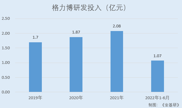 2019-2021年及2022年1-6月,格力博研發(fā)投入分別為1.70億元、1.87億元、2.08億元、1.07億元,占當(dāng)期營(yíng)業(yè)收入的比重分別為4.58%、4.35%、4.16%、3.37%。