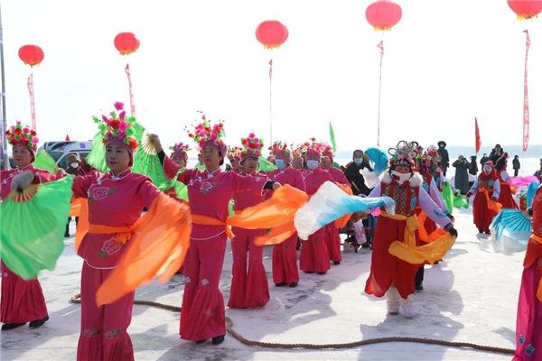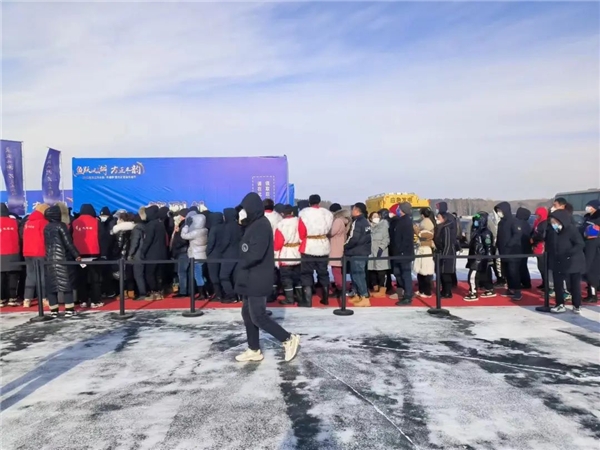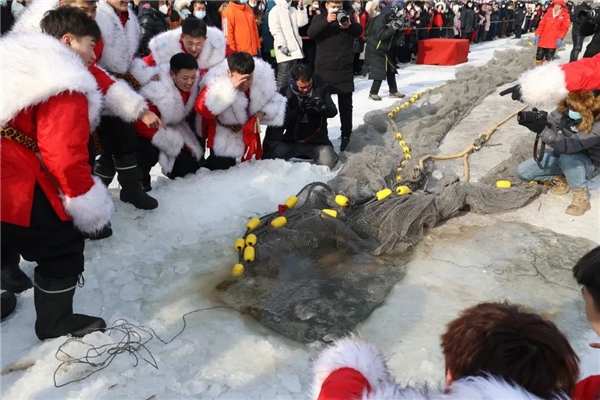 冬捕活動(dòng),世代傳承。雖然室外天氣寒冷,但依然擋不住游客們參與其中的熱情。鑿冰、下網(wǎng)、拉網(wǎng)、出魚(yú),漁網(wǎng)中活蹦亂跳的魚(yú)兒浮出冰面,引得現(xiàn)場(chǎng)的游客爭(zhēng)相拍照打卡,呈現(xiàn)出了魚(yú)躍人歡的新春景象。作為癸卯兔年當(dāng)?shù)囟兜牡?一網(wǎng)“頭魚(yú)”,很多游客都想把寓意“連年有余”的“?!濒~(yú)帶回家,最終,活動(dòng)現(xiàn)場(chǎng)的4條“頭魚(yú)”通過(guò)拍賣的方式,最 高以2.3萬(wàn)元拍出。