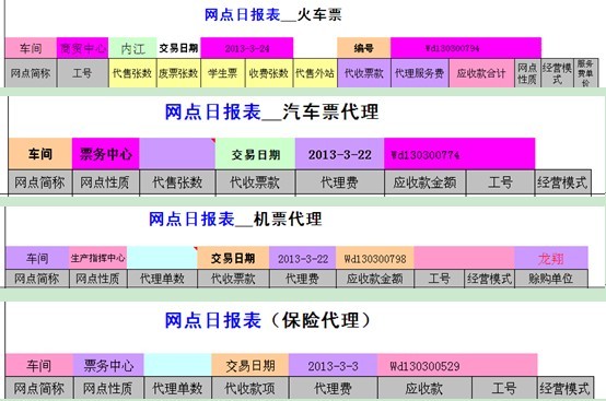 四川西南鐵路國(guó)際旅行總社日常處理模塊由各使用單位錄入本單位的主要業(yè)務(wù)如火車票、汽車票、機(jī)票、保險(xiǎn)等每個(gè)代售點(diǎn)每天的銷售情況。如下:網(wǎng)點(diǎn)日?qǐng)?bào)表—(火車票、汽車票、機(jī)票、保險(xiǎn))