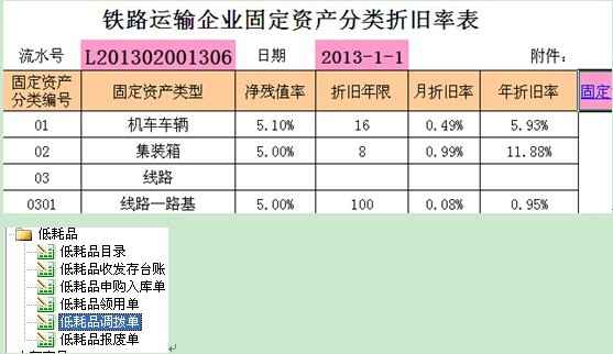 四川西南鐵路國(guó)際旅行總社資產(chǎn)管理可以按固定資產(chǎn)卡片、固定資產(chǎn)分類折舊率表(如下)、固定資產(chǎn)折舊分部門計(jì)算表、固定資產(chǎn)管理臺(tái)帳、固定資產(chǎn)折舊明細(xì)表、更新改造計(jì)劃項(xiàng)目審批、固定資產(chǎn)購(gòu)置、工程改造審批表幾個(gè)方面子目錄分別錄入。