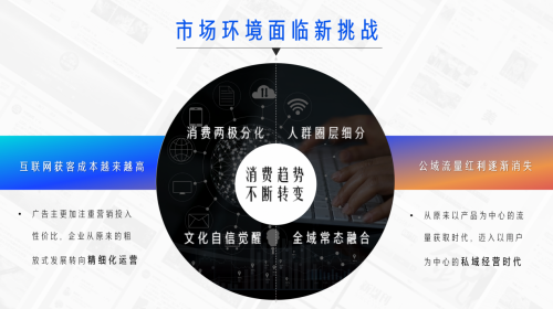“降本增效”是互聯(lián)網(wǎng)進(jìn)入存量時(shí)代以來(lái)提及頻次最 多的關(guān)鍵詞之一。隨著互聯(lián)網(wǎng)獲客成本越來(lái)越高,公域流量紅利逐漸消失,廣告主更加注重營(yíng)銷(xiāo)投入的性?xún)r(jià)比。由此帶來(lái)的變化是,企業(yè)從原來(lái)的“粗放式發(fā)展”轉(zhuǎn)向“精細(xì)化運(yùn)營(yíng)”,從原來(lái)以產(chǎn)品為中心的流量獲取時(shí)代,邁入以用戶(hù)為中心的私域經(jīng)營(yíng)時(shí)代。
