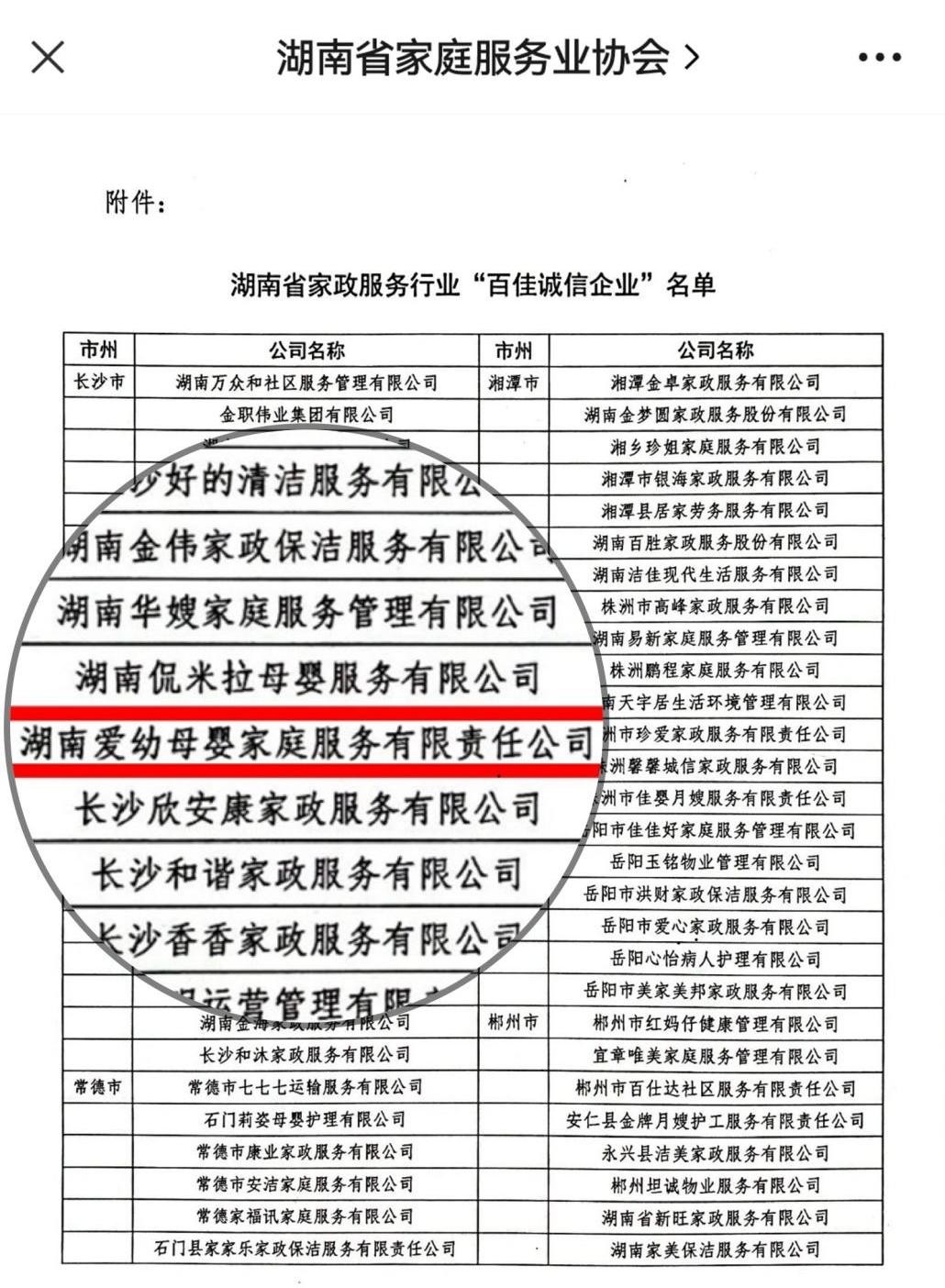 愛(ài)幼母嬰獲得湖南省家政服務(wù)行業(yè)“百佳誠(chéng)信企業(yè)”稱號(hào),