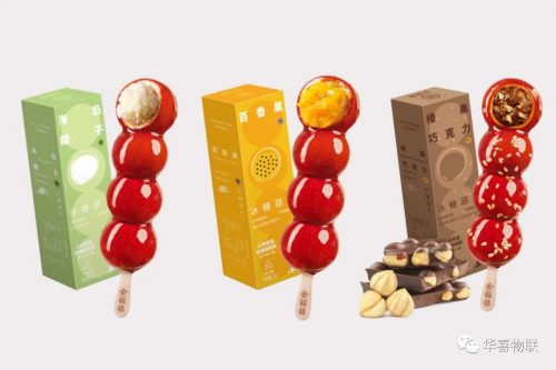 而在味道上想要抓住復(fù)購,就必須以多品類的SKU取勝。華喜·冰的糖葫蘆因為是食品廠冰鮮預(yù)制,完全區(qū)別于傳統(tǒng)口味!