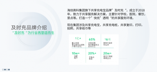 東莞市海創(chuàng)高科電子科技有限公司成立于2018年,總部位于廣東省東莞市,旗下“及時充“品牌提供移動充電解決方案。及時充是一種全新的移動充電解決方案。及時充突出“快充,透明”的服務(wù)理念,讓更多的商家和消費者真正享受到共享充電寶的“低價,透明,快充”,及時充不單有租借功能,還有很好玩的全品類的供應(yīng)鏈商城對接會員用戶。