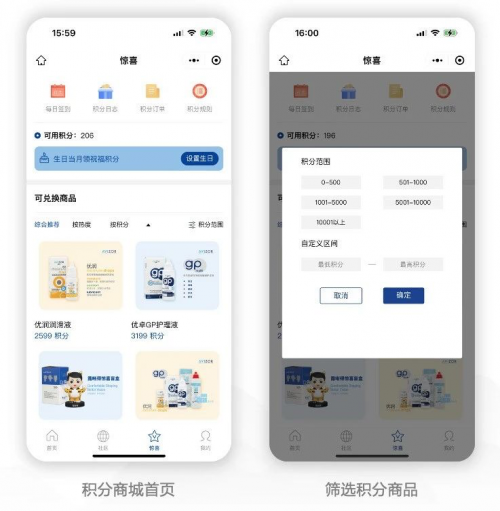 積分的使用可以為客戶帶來優(yōu)惠減免,或是兌換商品。尤其對于周期性復購用戶來說,提升用戶使用積分的頻次,通過簽到的方式激勵用戶每天打開小程序,提升活躍度。