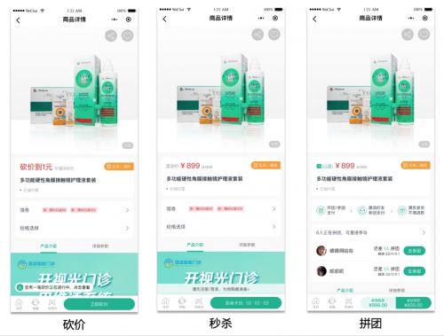 診所不定期地通過爆款或常規(guī)商品打包套餐進行營銷,可以刺激消費者促成沖動消費。砍價拼團,是用戶發(fā)起砍價,通過分享商品鏈接給好友,讓好友點擊鏈接幫其砍價同時,湊成成團人數(shù),最終讓目標用戶裂變的營銷手法。