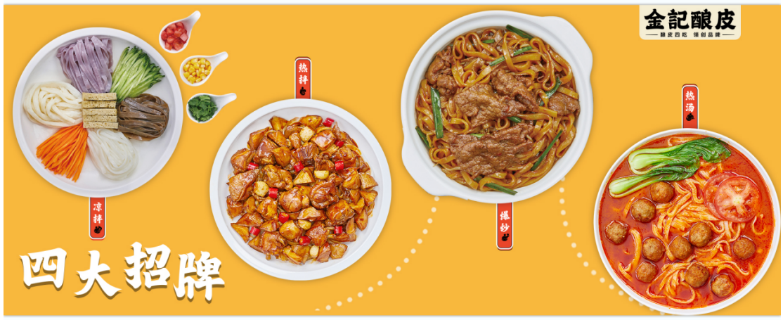 金記釀皮”創(chuàng)建于2005年,專注釀皮品類18年,是國內(nèi)首家在店面實現(xiàn)釀皮現(xiàn)做的品牌;金記釀皮不僅提升了釀皮行業(yè)制作的新標準,同時解決了傳統(tǒng)前店后廠的重餐飲模式;金記首創(chuàng)的以釀皮四吃(涼拌、熱拌、爆炒、熱湯)為核心的差異化品類,突破了釀皮品類季節(jié)性的限制;并通過20多家直營門店的多業(yè)態(tài)、多店型盈利模型的打造、多年健康且持續(xù)的經(jīng)營,已在快餐領(lǐng)域形成了成功的品牌和商業(yè)模式,目前已與合生匯、印象城、龍湖天街、萬達、萬象匯、中海、金鷹、首創(chuàng)等知名商業(yè)達成合作,并繼續(xù)擴大布局。