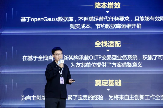 商業(yè)落地是開源項目前進的驅動力,大會邀請了10家重量級客戶及合作伙伴分享基于 openGauss 的創(chuàng)新成果。云和恩墨北區(qū)行業(yè)架構部副總經理江寧聯合民生銀行數據庫專家孔再華在主論壇發(fā)表了題為《奮楫篤行,臻于至善 - 民生銀行自主創(chuàng)新數據庫能力構建》的演講??自偃A首先談到,在自主創(chuàng)新的探索中,各行業(yè)普遍面臨著一些問題,如遷移前的數據庫選型復雜,數據庫種類、架構、路線多;遷移過程艱辛,任務重工期緊,不確定性多,難以把控;遷移后又面臨管理雜亂,新數據運維體系建設和多種異構數據庫同時管理的訴求。這就需要不止對數據庫產品的技術考量,同時還要兼顧實現工期、成本與質量。面對這些問題,民生銀行選擇通過 openGauss 社區(qū)的力量共同合作,其中云和恩墨為民生銀行提供了全生命周期的遷移工具套件和服務支持。