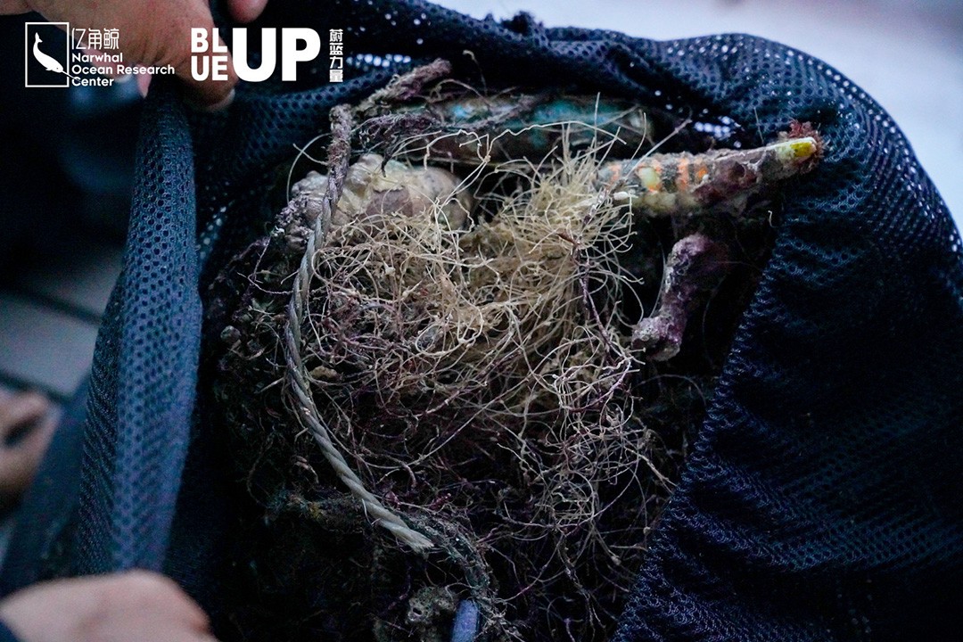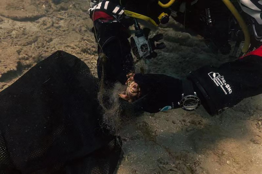經(jīng)過20個(gè)日夜的準(zhǔn)備,數(shù)10個(gè)烈日下團(tuán)隊(duì)成員在水上水下的反復(fù)計(jì)劃驗(yàn)證和測(cè)試,從4小時(shí)到8小時(shí)的長時(shí)間潛水的耐受訓(xùn)練,6月8日,從日出到日落,億角鯨的隊(duì)員和志愿者們一起潛入海底, 12小時(shí)連續(xù)不斷的海底漁網(wǎng)清理,共有近200公斤的海底漁網(wǎng)垃圾被清除。