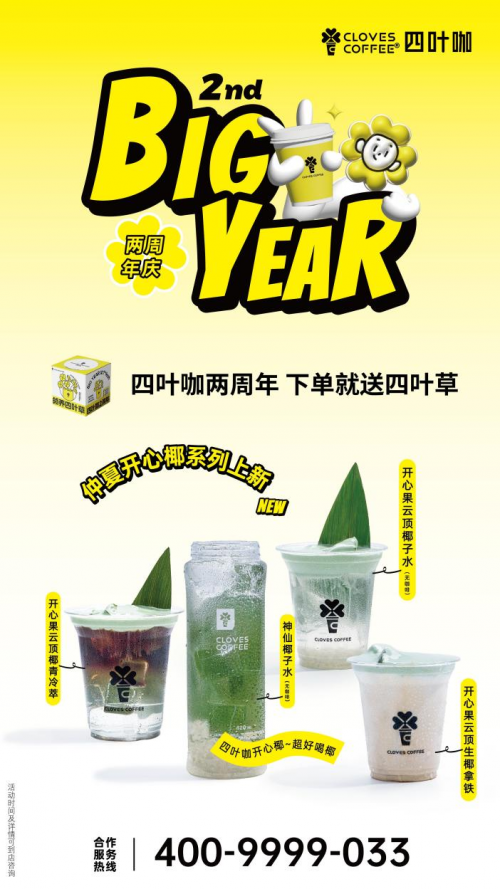 不僅如此,在產(chǎn)品策略上,除了結(jié)合云南花果特色之外,四葉咖也是打造了口味豐富、更新?lián)Q代快、強地域特色口味的創(chuàng)意咖啡產(chǎn)品矩陣,培養(yǎng)核心用戶,正如本次兩周年之際推出的夏長新品“仲夏開心椰”系列,特邀第一屆世界咖啡師比賽中國臺灣省冠軍、GABEE. 咖啡品牌創(chuàng)始人林東源先生參與研發(fā),酥脆咸香開心果搭配甘甜馥郁椰汁,碰撞出清甜爽口的奇妙滋味,打造夏日咖啡美學。