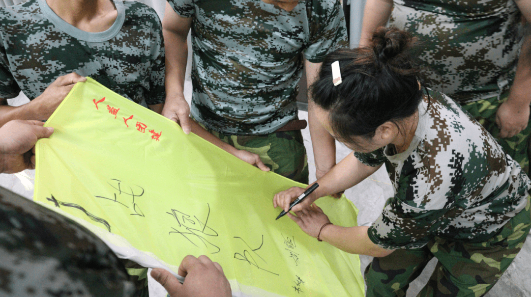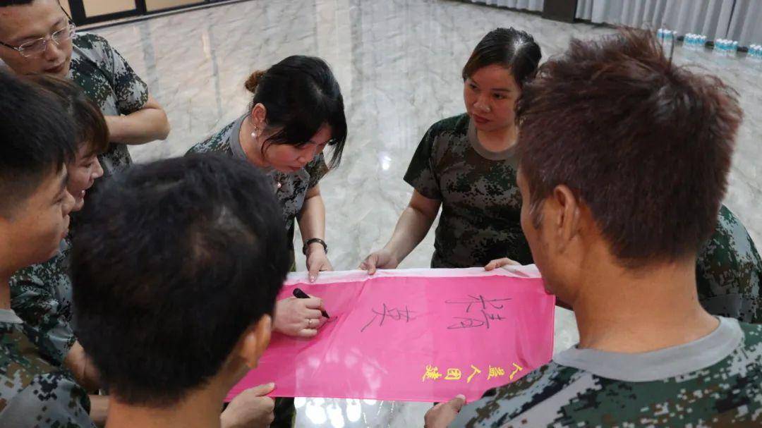 一個簡單的握手,一句真心的夸贊,迅速拉近了每一位伙伴的距離。在教官的帶領(lǐng)下,拓展訓(xùn)練在分組展示中拉開序幕,所有伙伴被分成四支隊伍,四個團(tuán)隊開啟“頭腦風(fēng)暴”,討論出別具創(chuàng)意隊名和口號,并在舞臺上、游戲中展示出團(tuán)隊的自信與豪情。