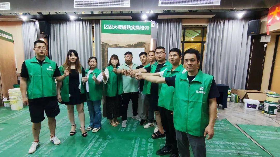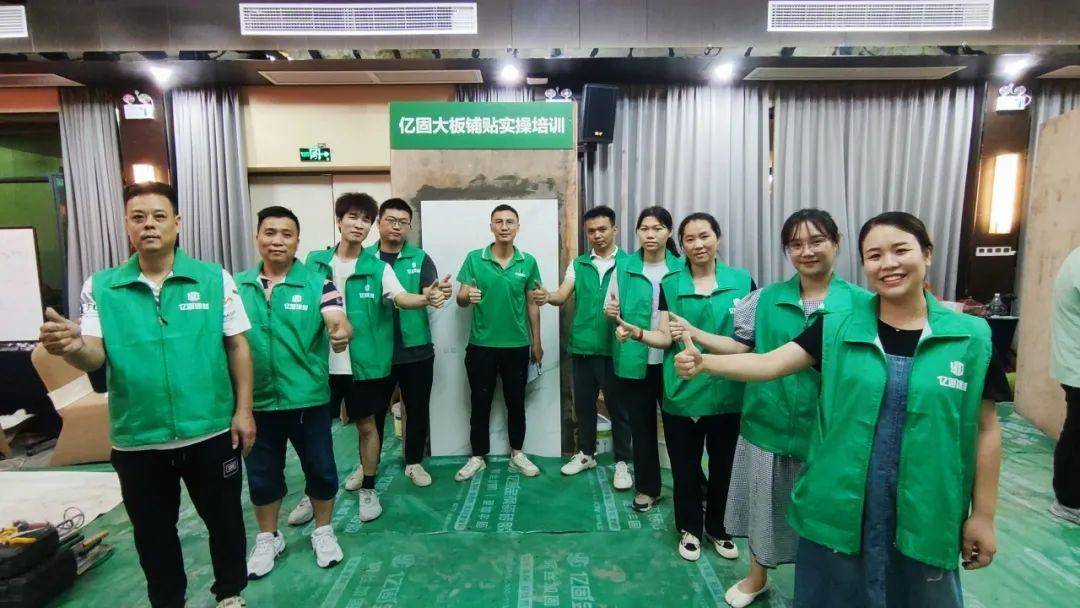 為幫助新晉經(jīng)銷商進(jìn)一步搶占市場,2023億固集團(tuán)·首席品牌官特訓(xùn)營還舉辦一場隆重的鋪貼大賽,在億固大板巖板落地交付首席培訓(xùn)師團(tuán)隊的帶領(lǐng)下,四個經(jīng)銷商團(tuán)隊分組進(jìn)行大板鋪貼實(shí)操。