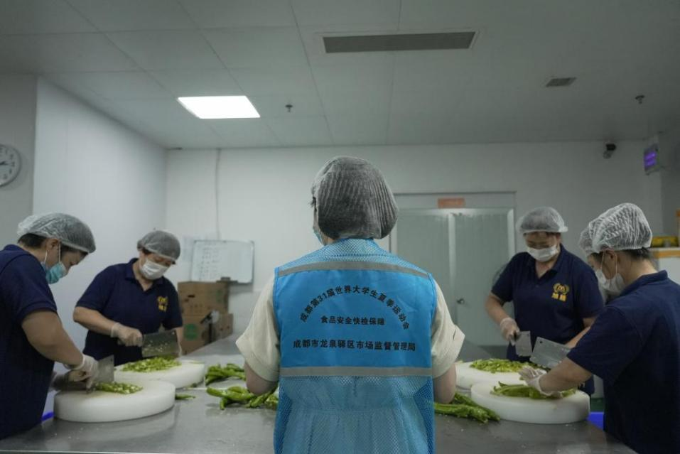 成就一場賽事,從來不是一個人的事。精彩大運背后,有著一群群“幕后英雄”堅守崗位。從食材的選擇加工,到菜品的儲存配送,成都旭膳供應鏈管理有限公司每一名員工都嚴格遵守標準化流程進行操作,以確保餐食的安全衛(wèi)生、營養(yǎng)美味。