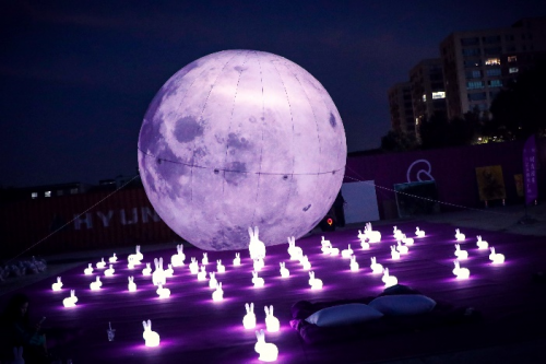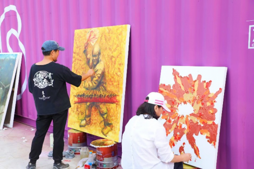 此次活動位于北京通州宋莊地標建筑——小堡環(huán)島東南側(cè),主辦方在此打造了一片“文化藝術(shù)廣場”,并在外圍設(shè)置了多彩櫥窗,用開放的櫥窗展示出各位藝術(shù)家們的精美作品,吸引觀眾駐足欣賞。