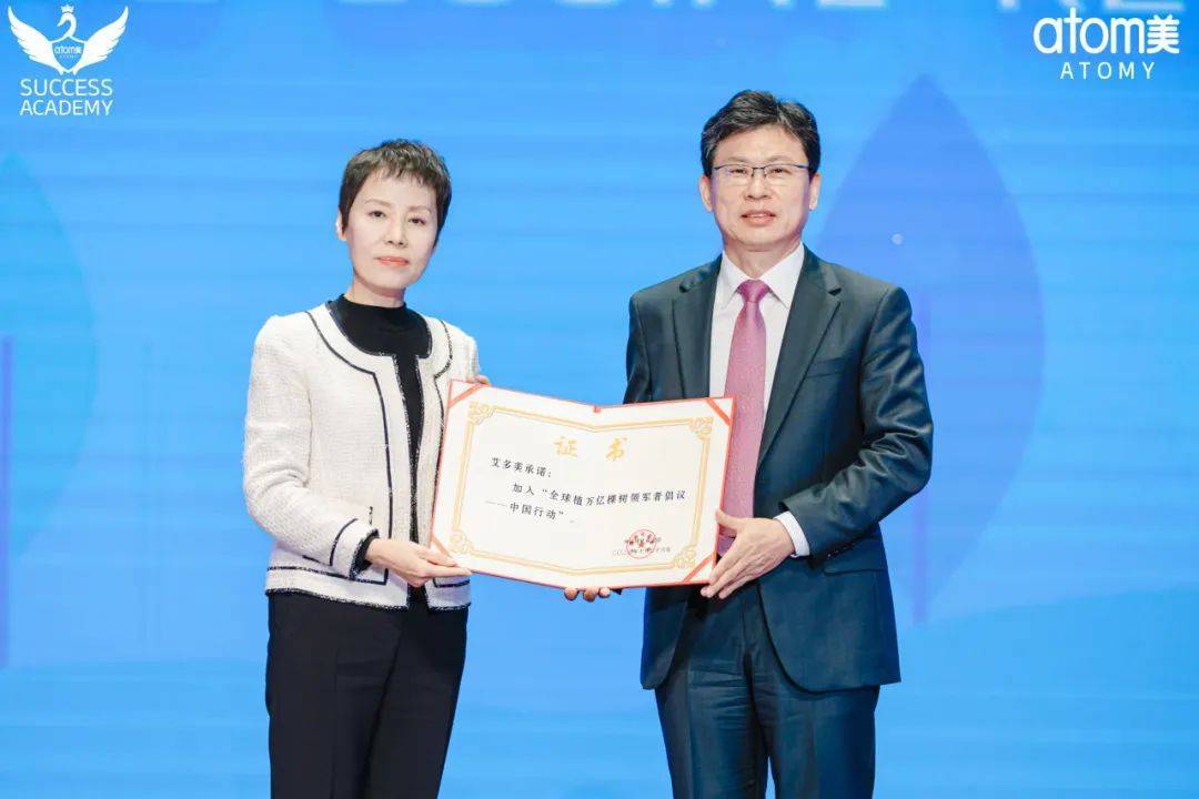 10月26日艾多美中國10月成功學(xué)院上,中國綠化基金會項目二處副處級干部王迪、中國綠化基金會副秘書長陳美娜作為特邀嘉賓出席本月成功學(xué)院,王迪向大家介紹了“全球植萬億棵樹領(lǐng) 軍者倡議——中國行動”的發(fā)展歷程及設(shè)立意義,陳美娜為艾多美(中國)有限公司總經(jīng)理樸炳寬頒發(fā)榮譽證書。